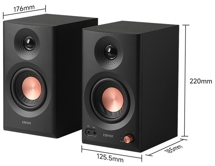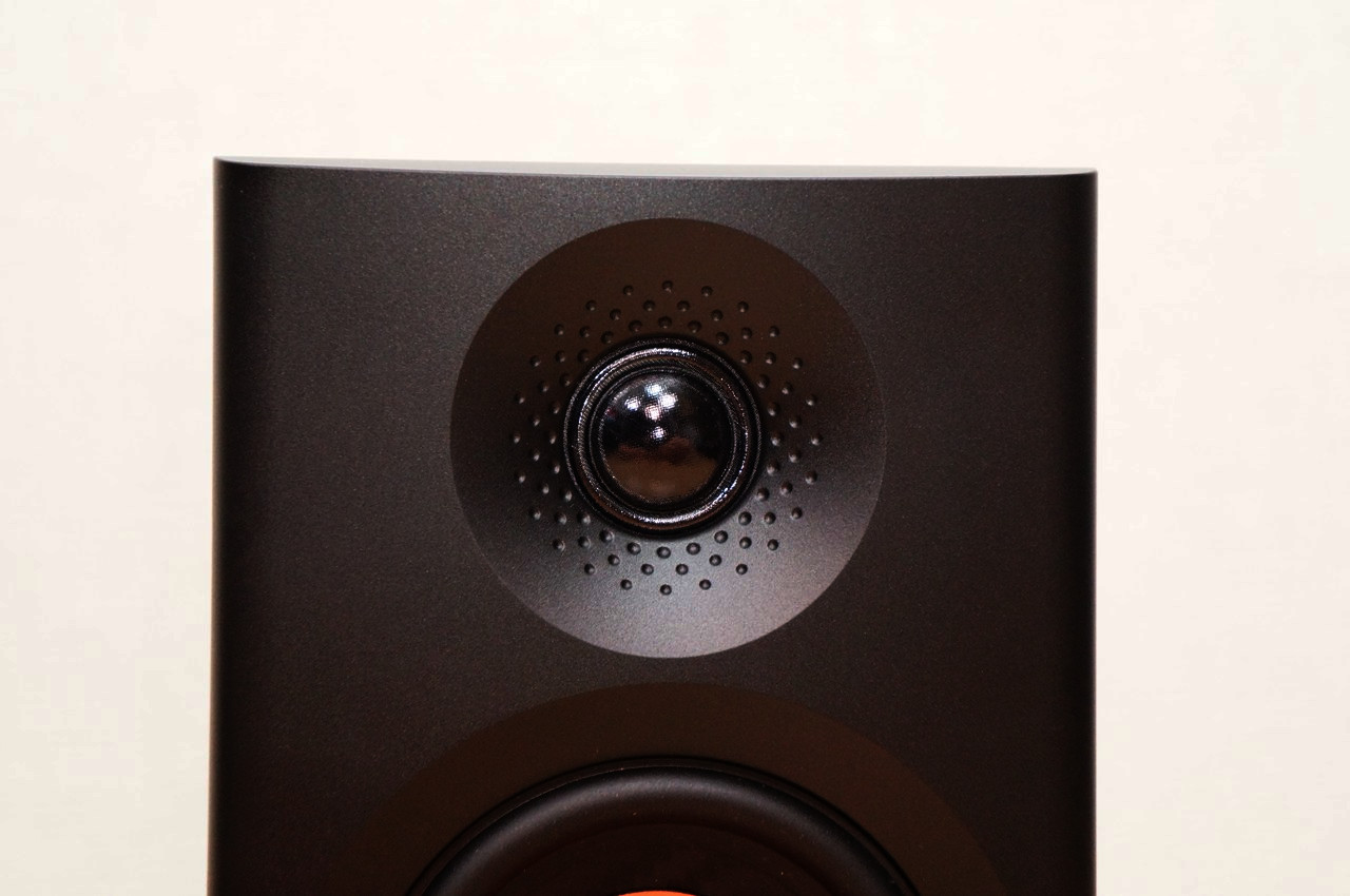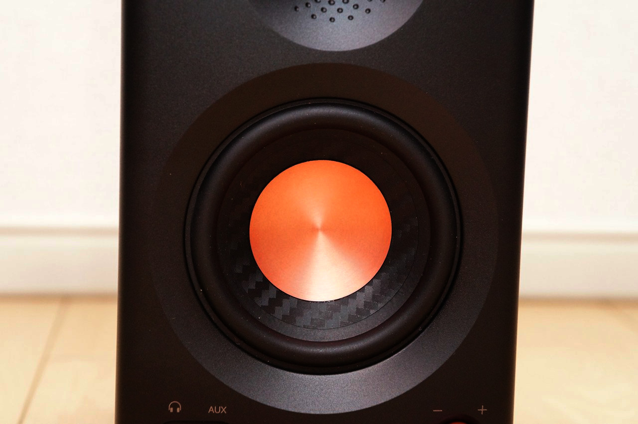 ツイーターは1インチのシルクドーム型、ウーファーは3.5インチ。ウーファー中央の銅色センターキャップがアクセントになっており、デザイン的にも洗練されています。