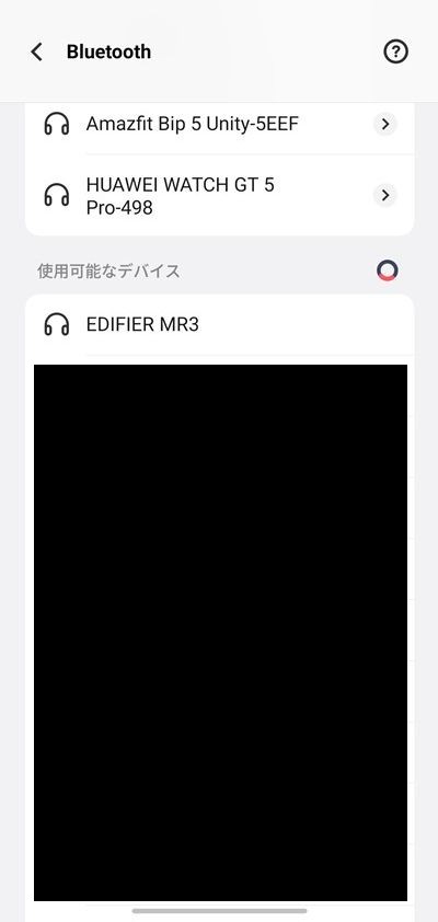 無線で使用する場合は、スマートフォンのBluetooth設定から「Edifier MR3」を選択するだけで簡単にペアリングできます。