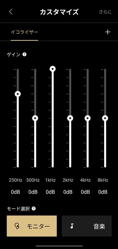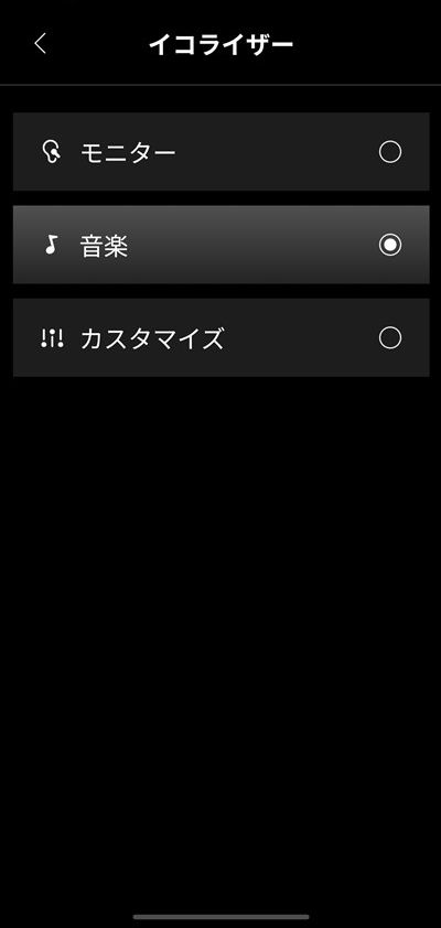 イコライザーでは、モニター向けや音楽再生向けなどのプリセットを選択できます。また、自分の好みに合わせた細かなカスタマイズも行えます。