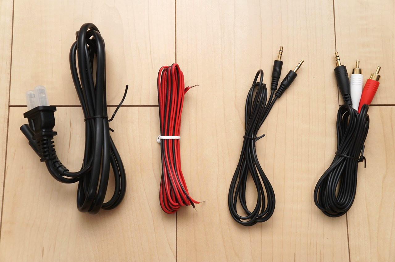 電源ケーブルやスピーカーケーブルだけでなく、オーディオケーブルも付属します。