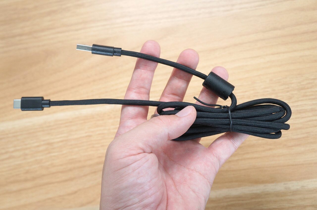 付属のケーブルは、取り回しがいい編み込み(パラコード)素材です。