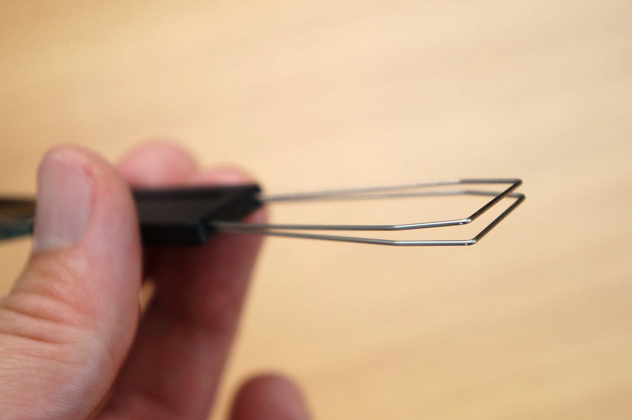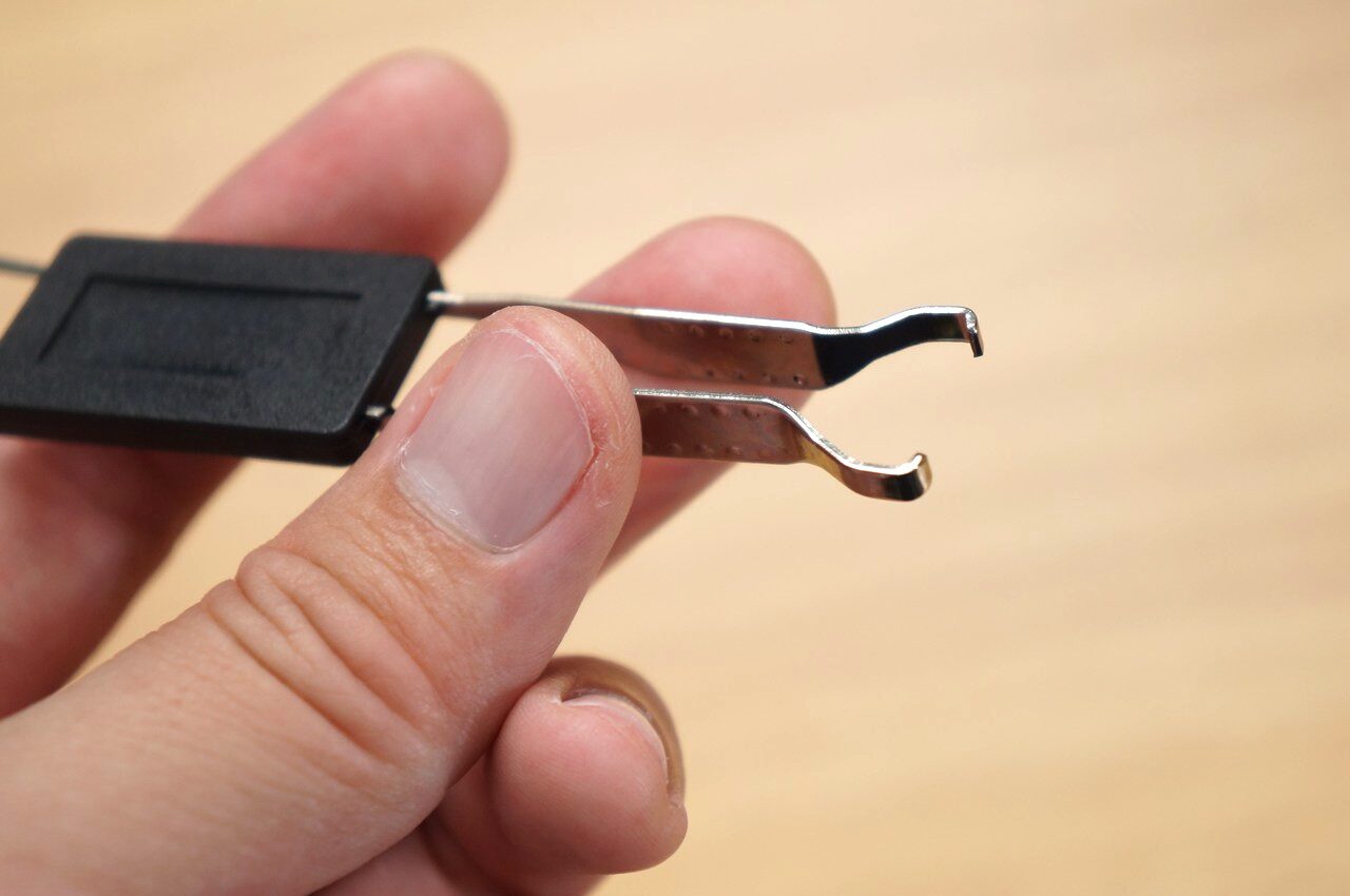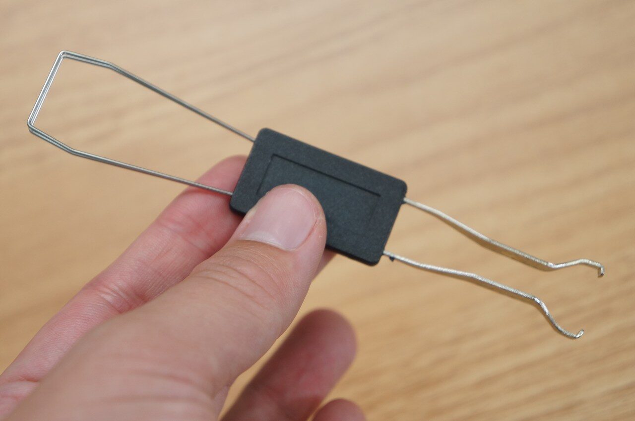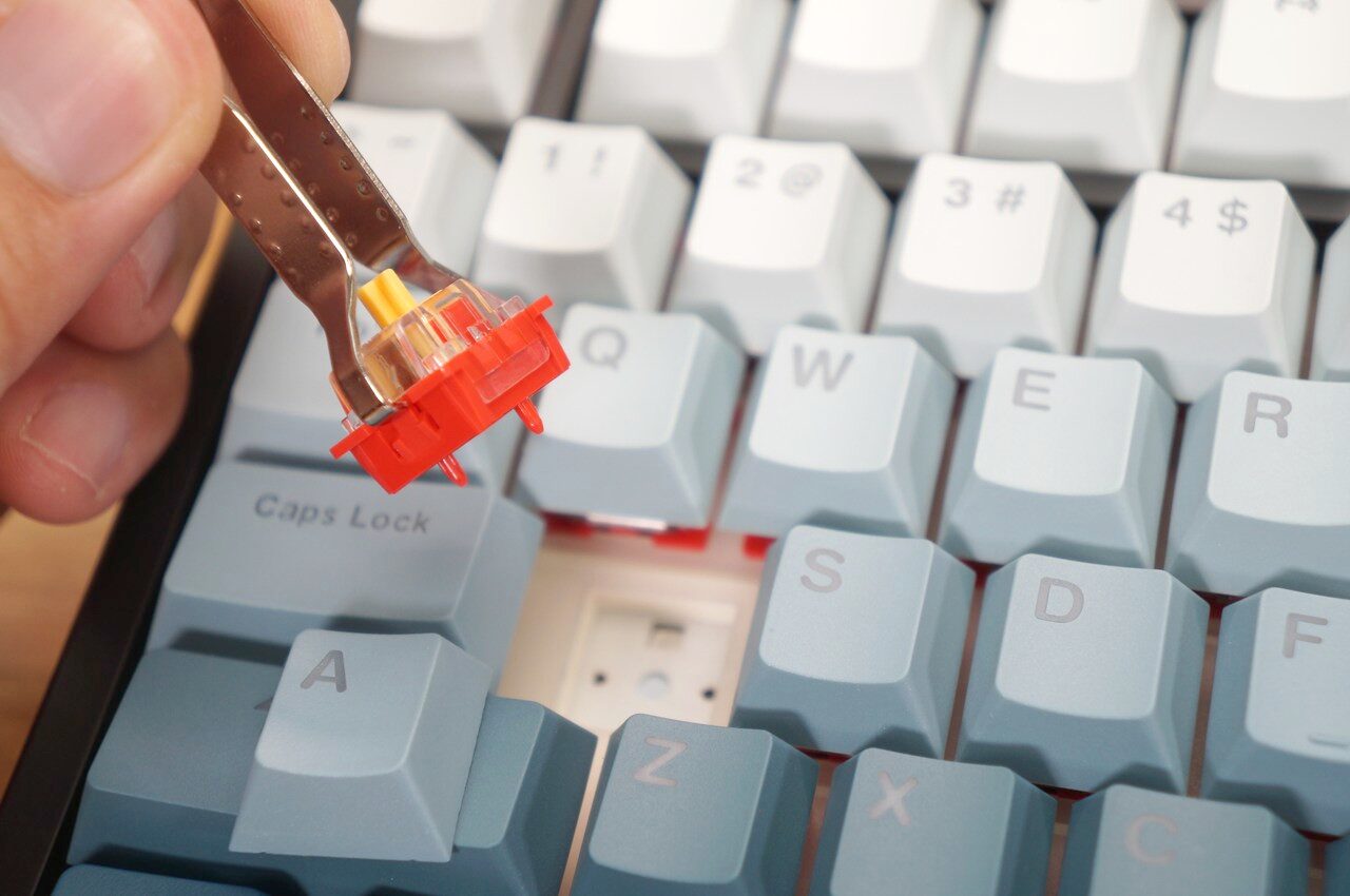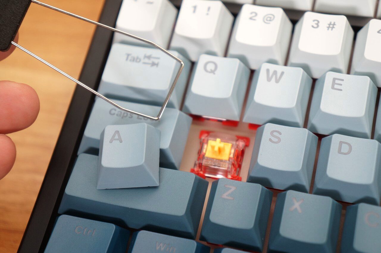 付属のキープーラーは実用的なワイヤータイプ。先端のツメを使えばスイッチも引き抜ける、使いやすい2in1構造になっています。ワイヤーがしっかりしているので、キーキャップを傷つけずにスポッと抜けました。