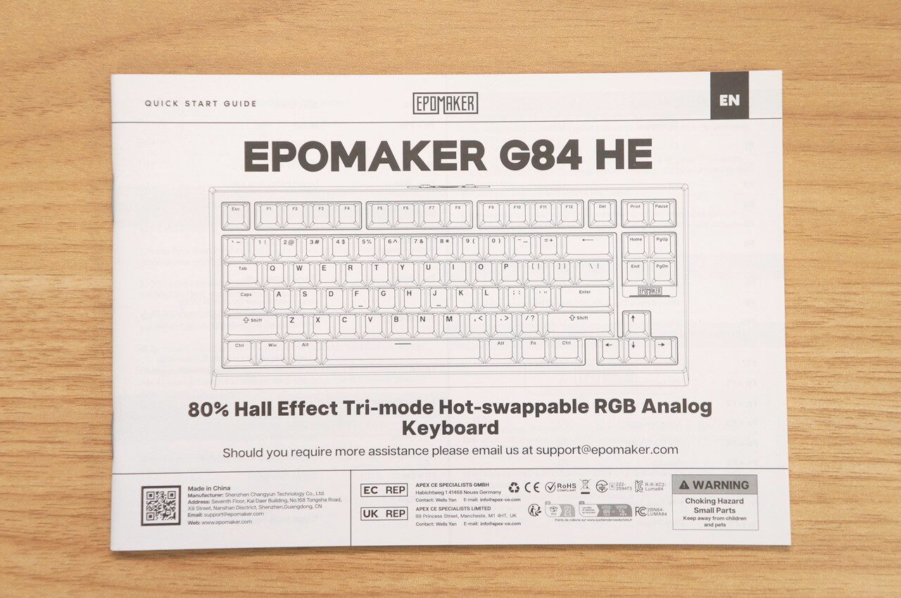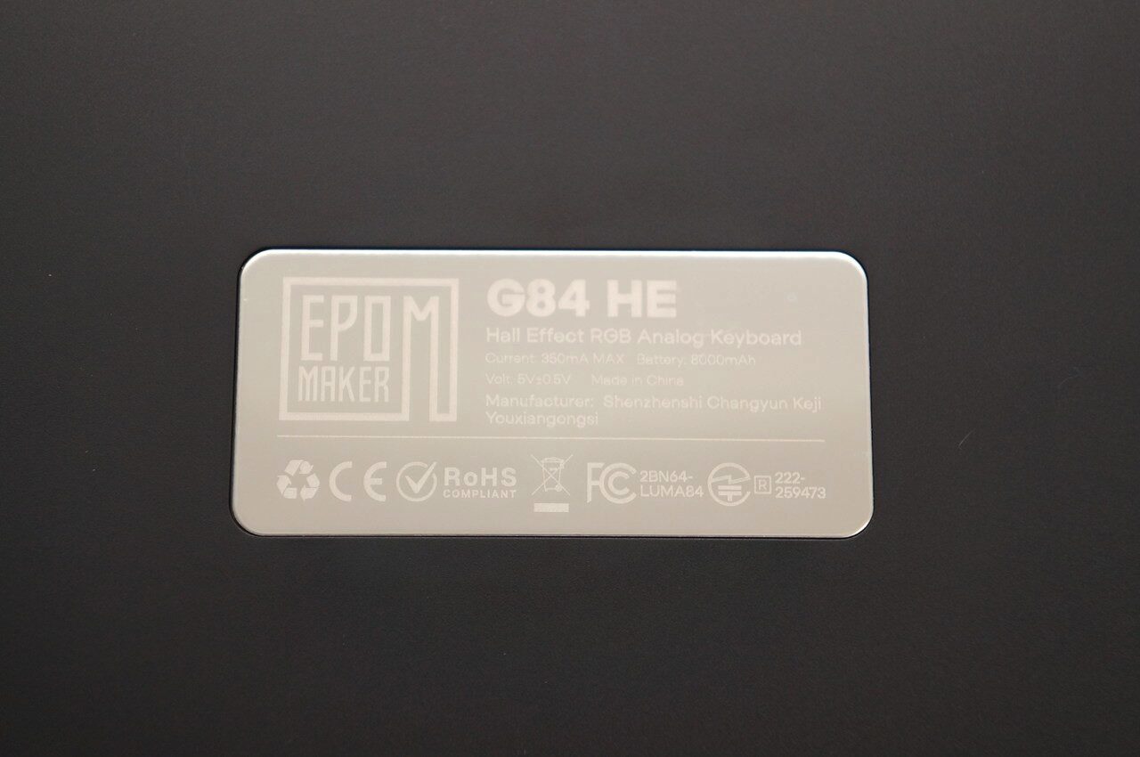 「EPOMAKER G84 HE」のロゴと仕様がしっかりと刻印されています。