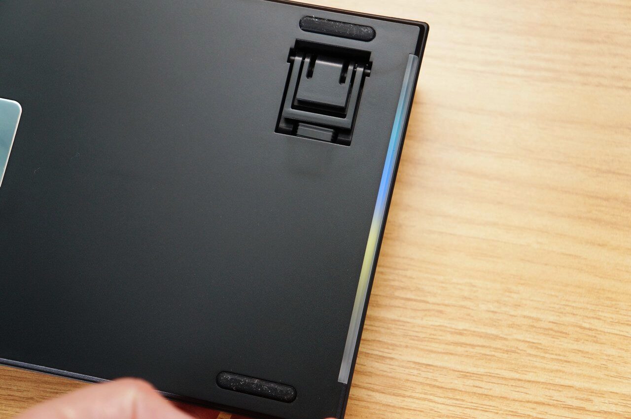 四隅には滑り止めのゴム足(シリコンパッド)が配置されていて、激しいタイピングでもズレません。