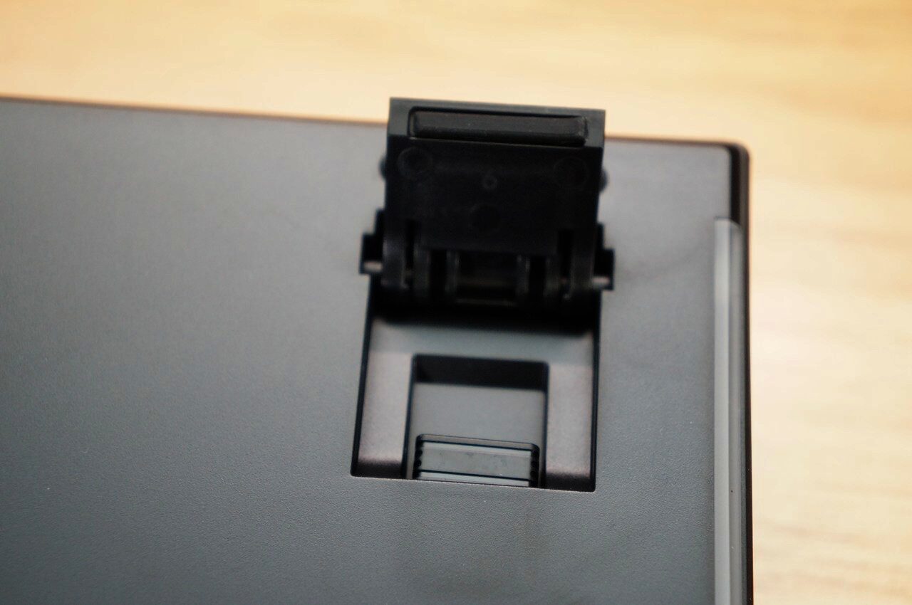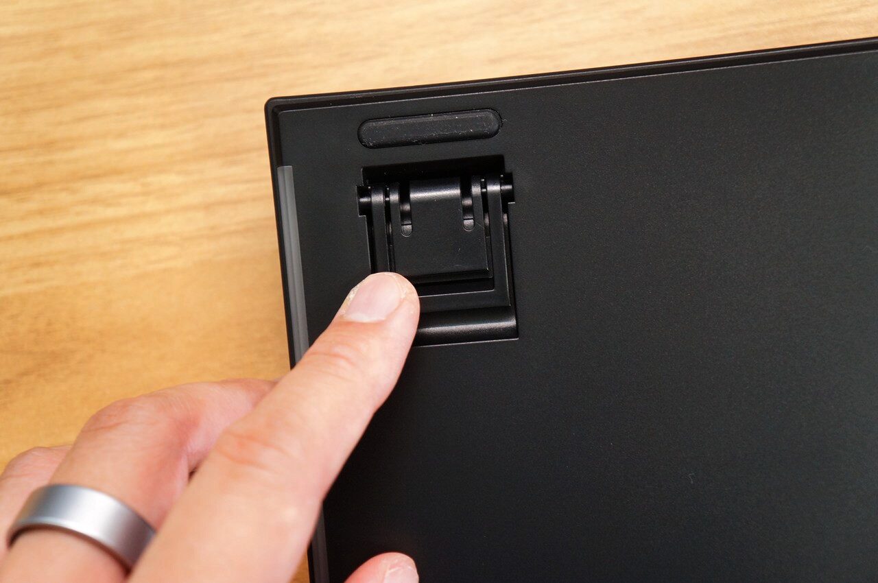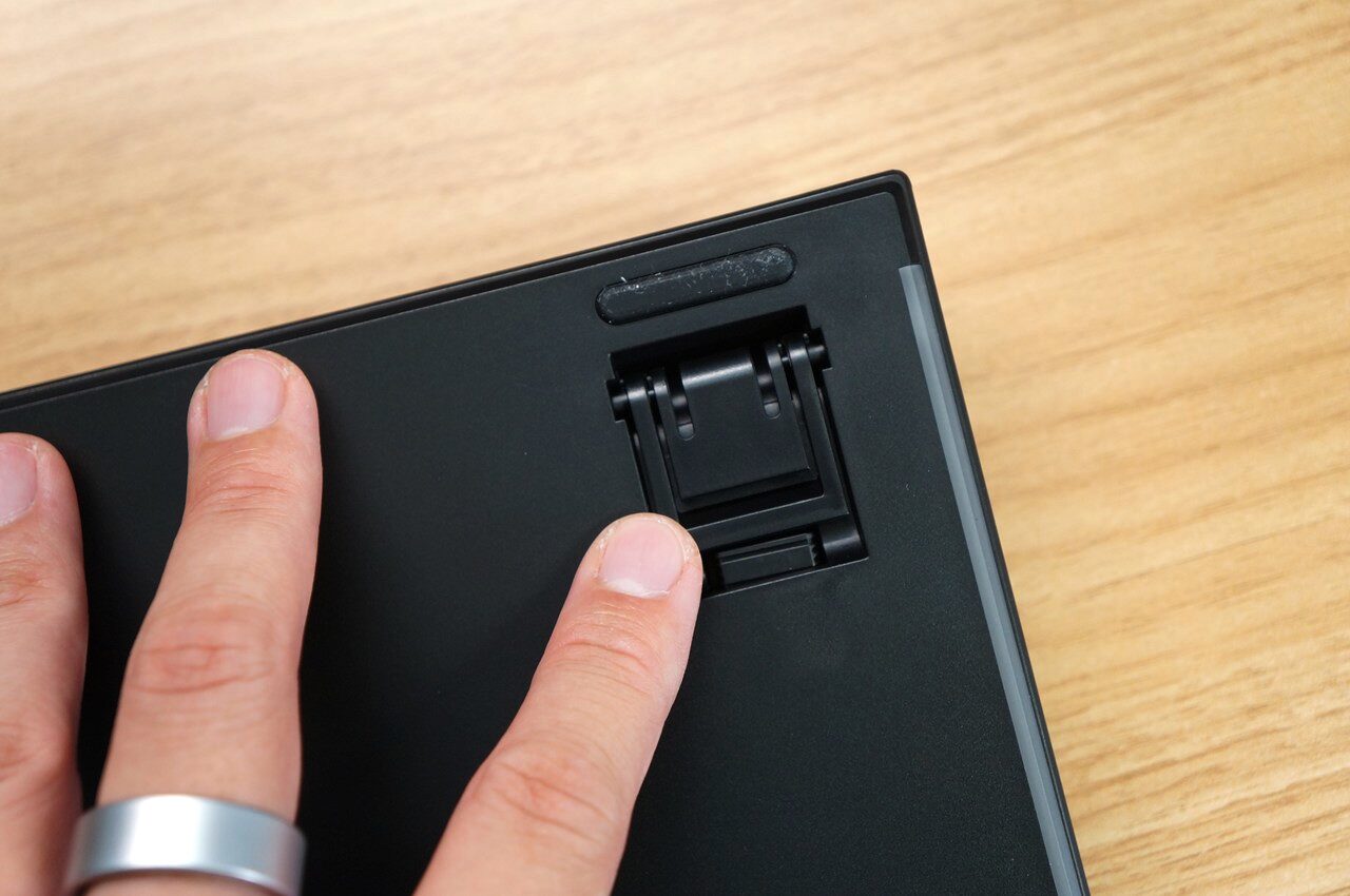 チルトアップ用のスタンドは二段階式です。スタンド自体の作りもガッチリしていて、タイピング中にパタンと倒れる心配はありません。