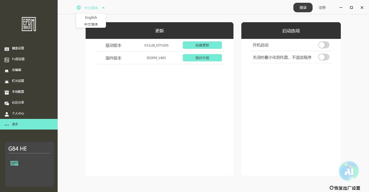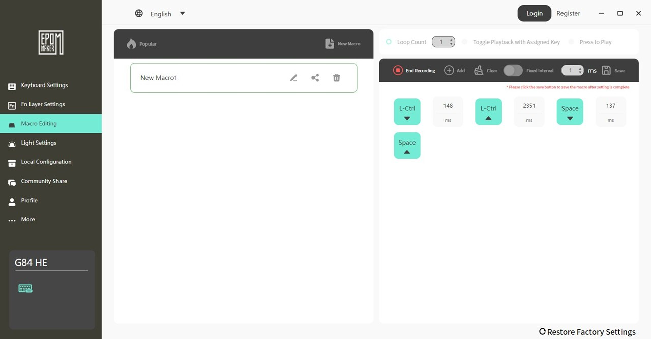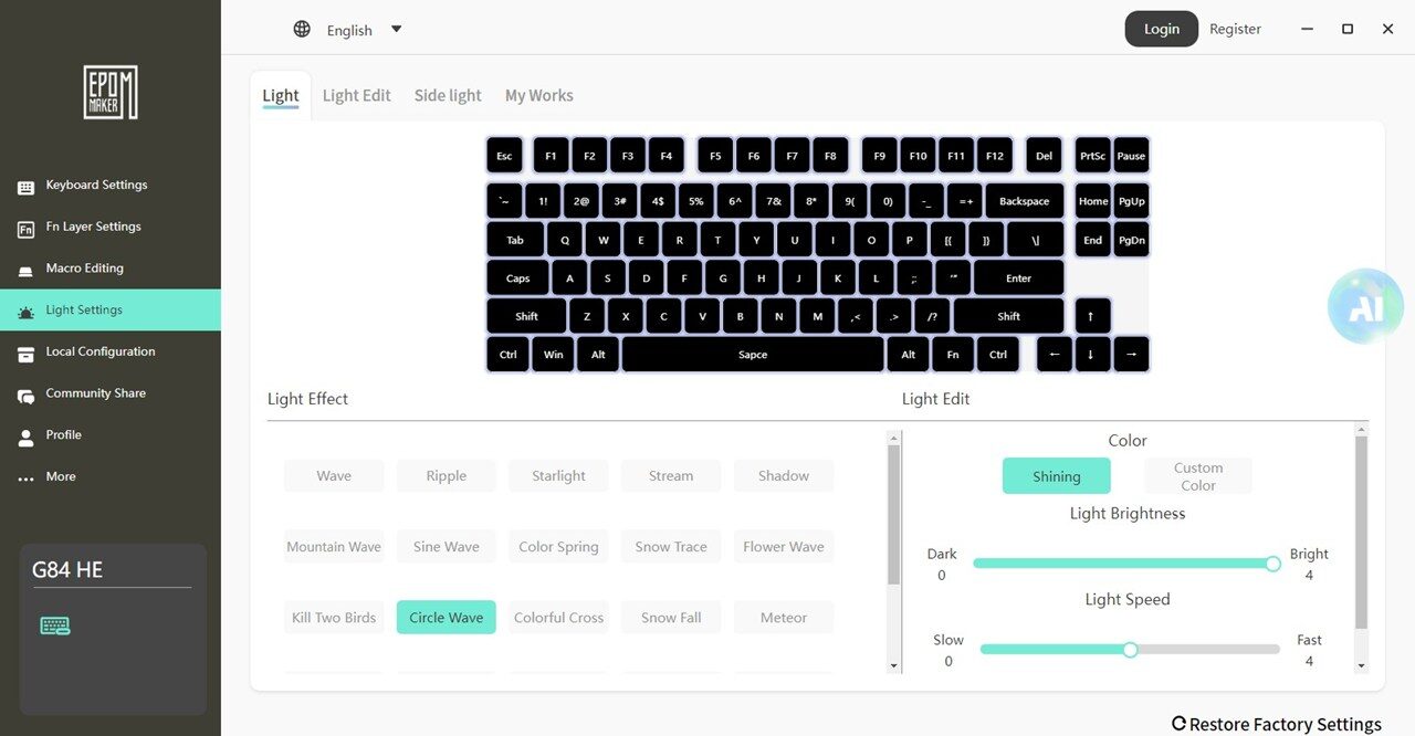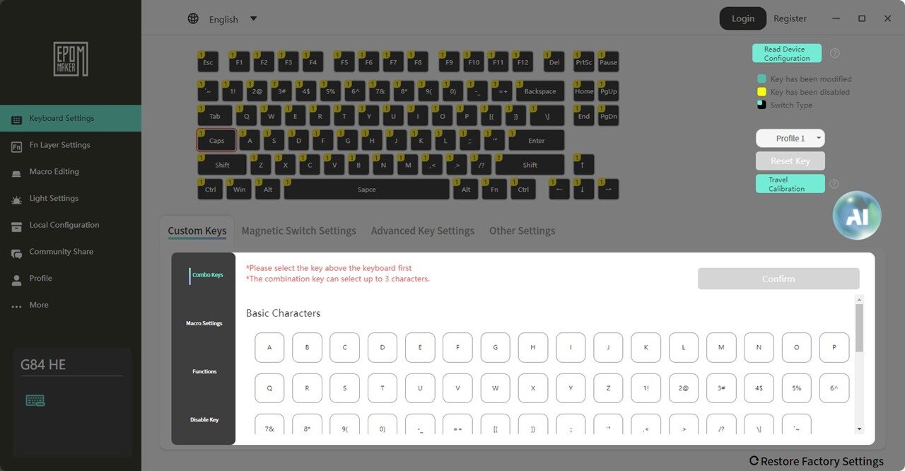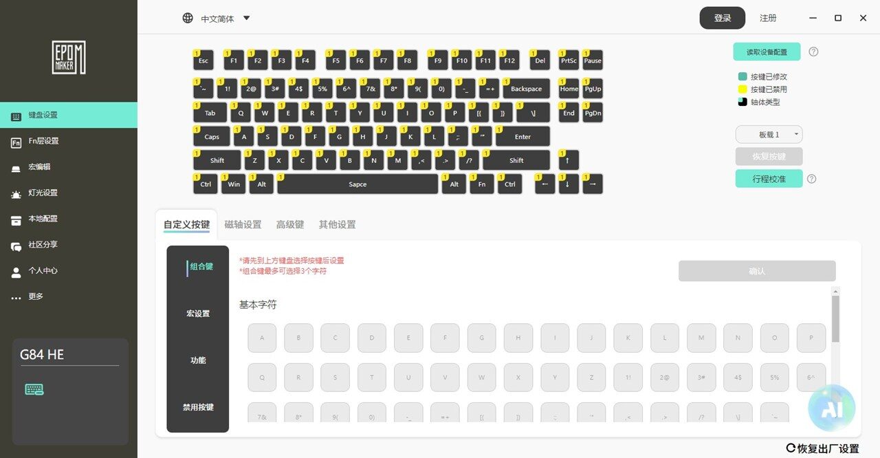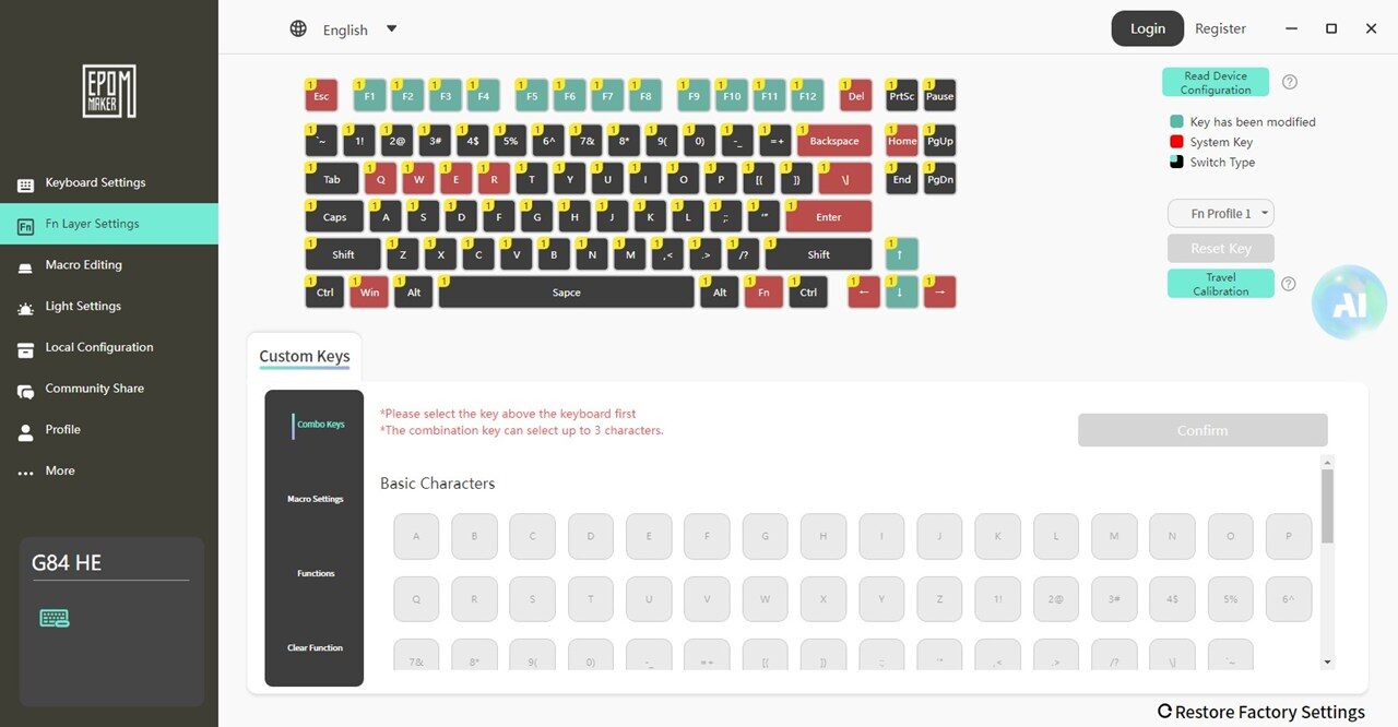 EPOMAKER G84HEは専用ソフトウェアを使って、さまざまな項目を自分好みに設定できます。